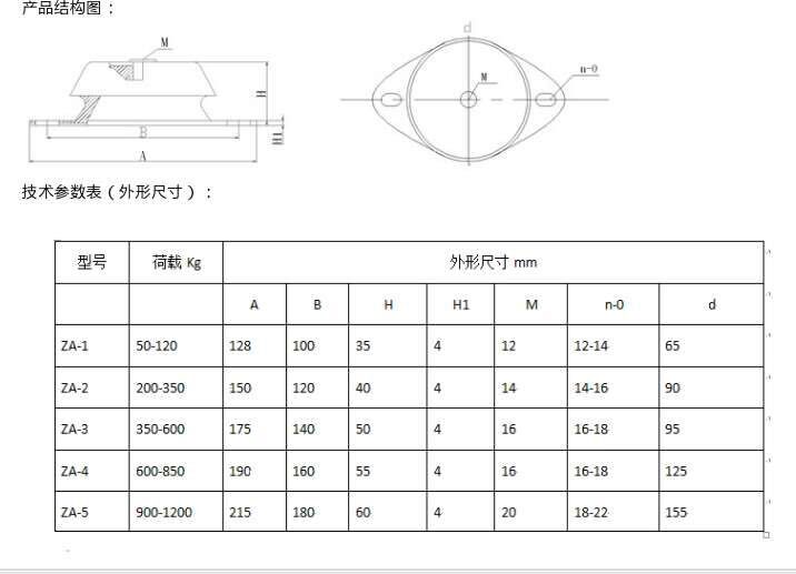 ZA型橡胶减振器是由上下壳体和橡胶减振层构成,适用于各类1500转/分以上船用、陆用、航空用机械设备的振动、冲击隔离。其在额定荷载下固有频率为10Hz。结构简单,安装更新方便,使用安全可靠。安装方式多种多样,适用于平置、侧置及侧挂等多种安装形式。横向刚度高于纵向刚度,平置时横向稳定性更好些。
